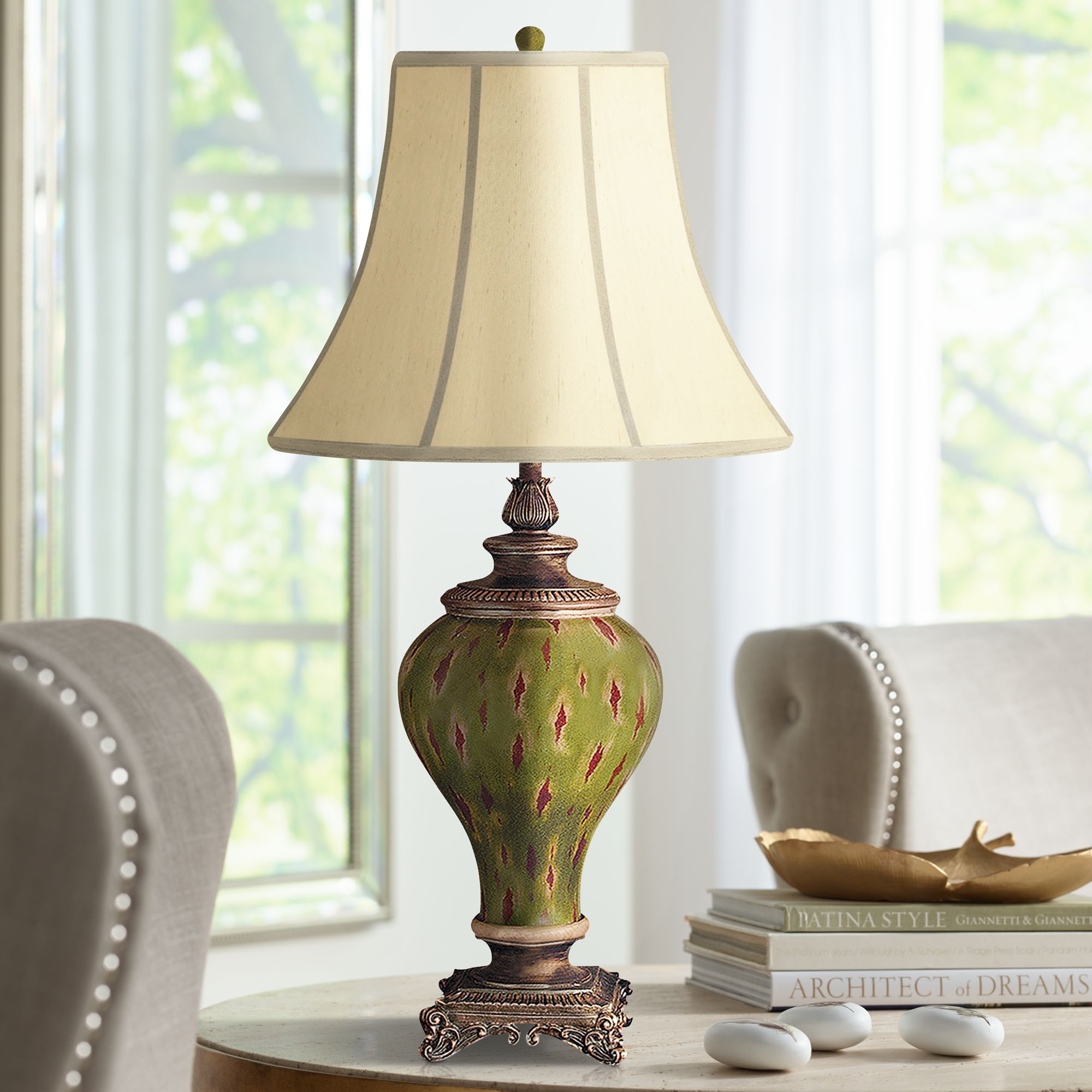 Oak Haven Palace Hand Painted Green Porcelain Table Lamp 8w716